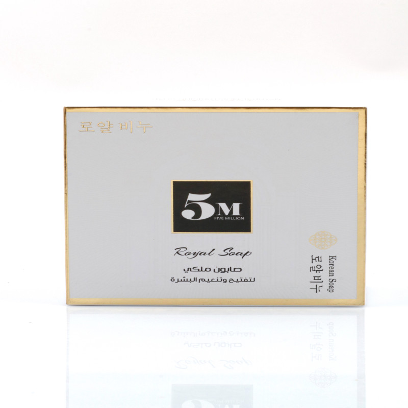 صابون 5M الأبيض بتركيبته الكورية المتطورة يمنحك مزيجًا مثاليًا من النعومة والتفتيح الطبيعي، بفضل مكوناته المختارة بعناية لتناسب جميع أنواع البشرة.