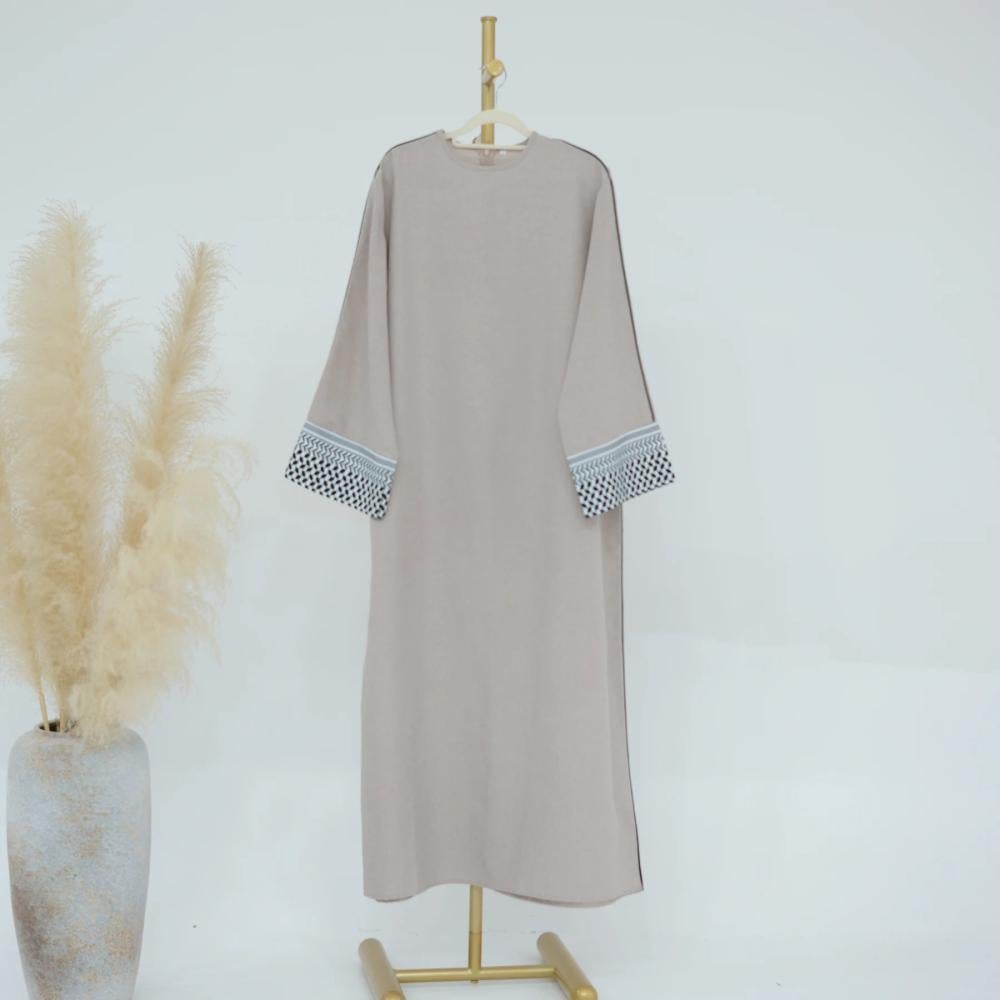الملابس المذكورة هي تصميمات إسلامية محتشمة للنساء، تجمع بين الأناقة والراحة. تتنوع بين العبايات العصرية والفاخرة التي تتميز بتفاصيل دقيقة مثل الطبعات أو التطريزات. تشمل أيضًا تصاميم خاصة للمناسبات الدينية مثل شهر رمضان والعيد، حيث يكون التصميم مغلقًا بالكامل لتوفير الحشمة. كما تحتوي على ملابس تناسب الأجواء الاحتفالية، مثل الفساتين المستوحاة من الأزياء التقليدية التي تجمع بين الحداثة والتراث.